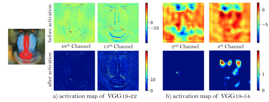활성화 후 대부분의 feature들은 소극적(inactive)으로 된 반면, 활성화 전 feature들은 더 많은 정보들을 가지고 있습니다.