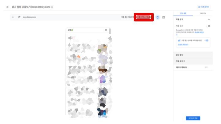 그러면 다시 광고 설정 미리 보기 화면이 나타나게 되는데요. 오른쪽 상단의 '자동 광고' 옆 버튼을 누르고 이를 활성화시켜 줍니다.