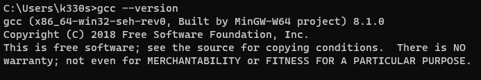 test에 사용한 version : 8.1.0 version이 정상적으로 표시되면 MinGW 설치 완료