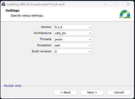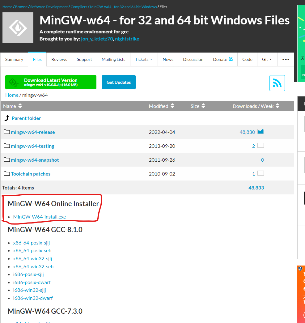MinGW zip 파일 download link :https://sourceforge.net/projects/mingw-w64/files/mingw-w64/